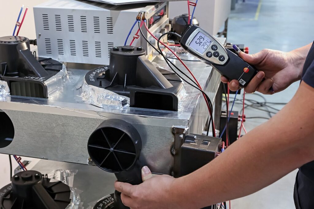 Этап 1: Сначала измерялась сила тока, потребляемая в свободной среде. Вентилятор считается находящимся в свободной среде, если он установлен вне корпуса и вокруг него в радиусе одного метра отсутствуют какие-либо препятствия.